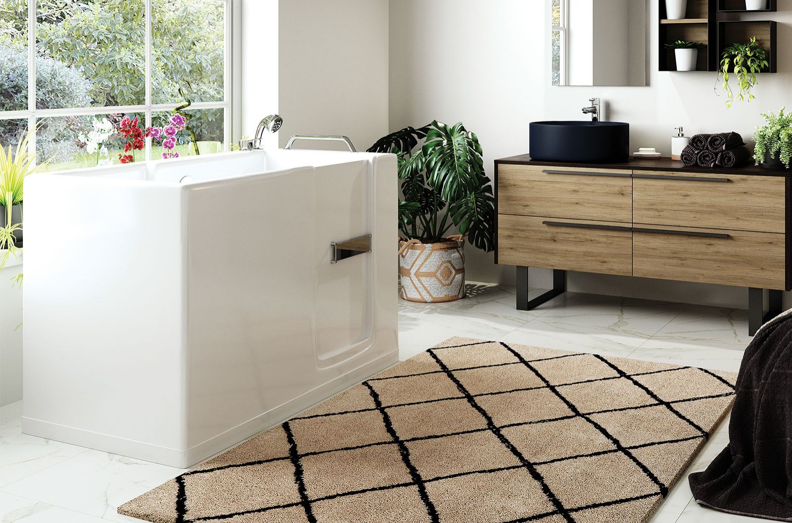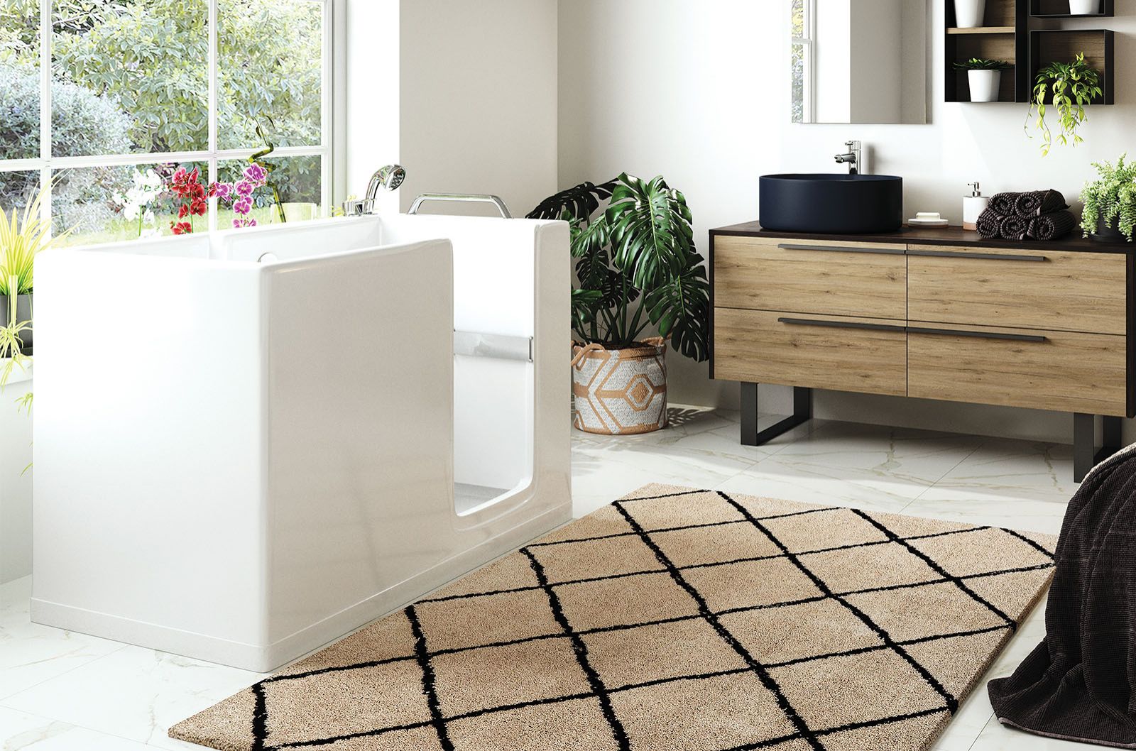 Con il servizio Vasca E-Motion puoi ottenere più autonomia e indipendenza grazie all'installazione di vasche monoblocco con apertura laterale, senza rischiare di scivolare.